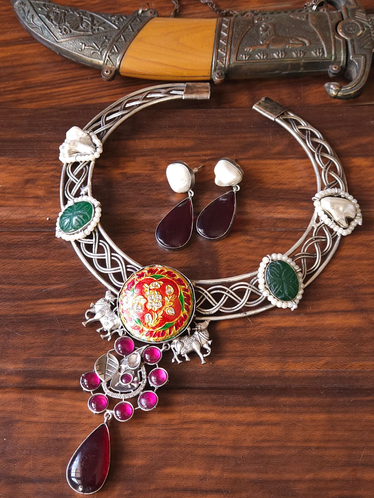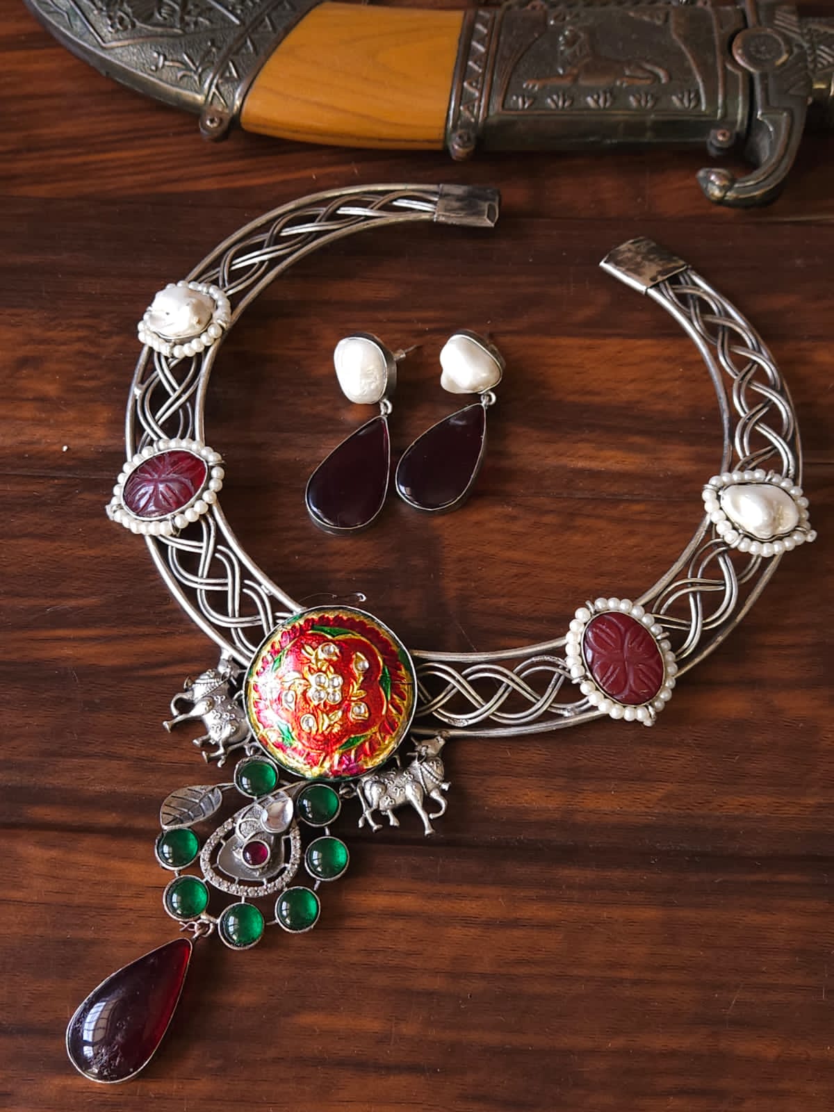 Buy Stylish Fusion Hasli Necklace with Earings!